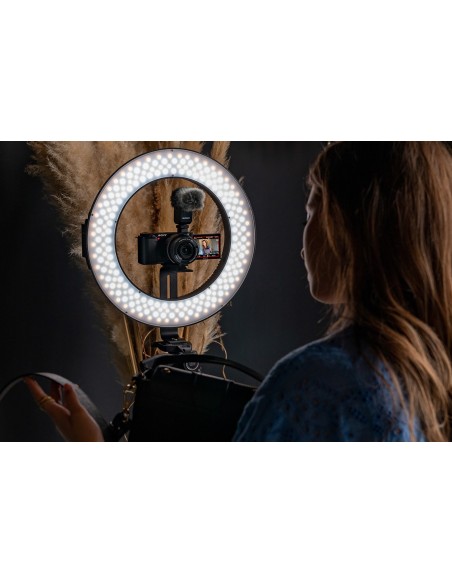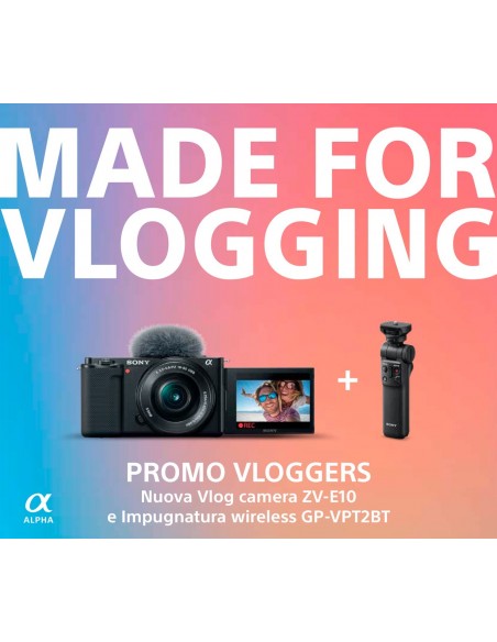 Una fotocamera per vlog che permette di filmare in modo rapido ed intuitivo grazie a: schermo orientabile e touch, spia di registrazione frontale, pulsante bokeh switch ed esposizione automatica del viso che consente di mantenere la corretta esposizione anche in condizioni di scarsa luminosità.
