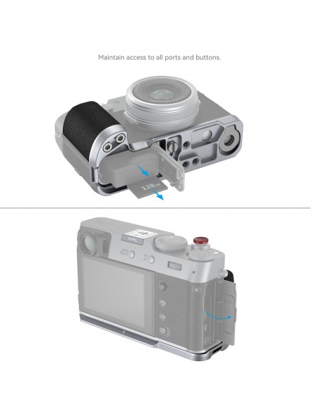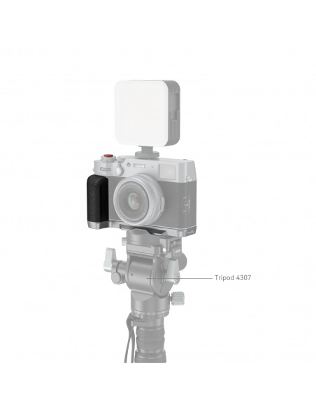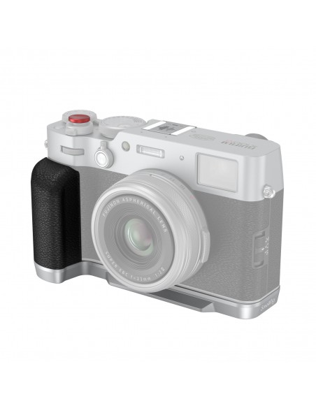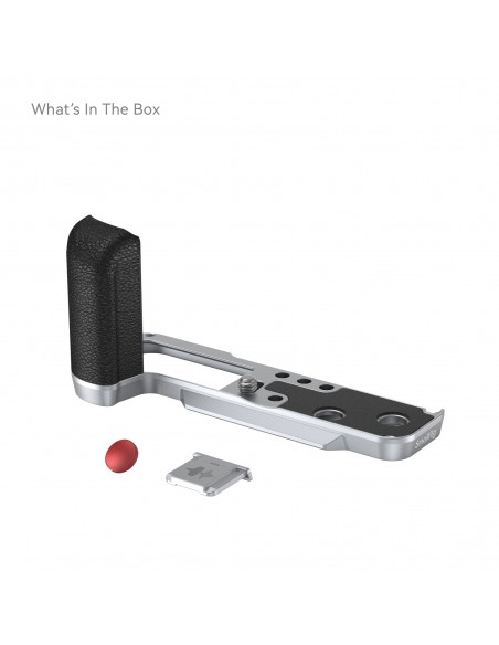 L'impugnatura a forma di L SmallRig per FUJIFILM X100VI / X100V è progettata per migliorare la presa della fotocamera. L'impugnatura a forma di L si monta sulla fotocamera con una vite da 1/4"-20 nella parte inferiore e i cuscinetti in silicone integrati prevengono i graffi. La struttura e il colore dell'impugnatura si abbinano perfettamente con FUJIFILM X100VI / X100V. L'impugnatura integrata nella piastra base a sgancio rapido Arca-Swiss consente un montaggio e smontaggio facile e veloce del treppiede tipo Arca. Quattro fori filettati da 1/4"-20 nella parte inferiore per fissare piastre e treppiedi tipo Manfrotto. Slot per cinturino per cinturino da polso (ID: 3848 ) . La chiave piatta incorporata sul fondo per un facile montaggio e smontaggio degli accessori. L'impugnatura viene fornita con l'esclusiva copertura hot-shoe con impressa l'onda sonora "FUJIFILM" e l'anno di fondazione come nostro tributo a FUJIFILM. Inoltre è dotato di un pulsante di scatto per garantire un tocco morbido e confortevole delle dita.