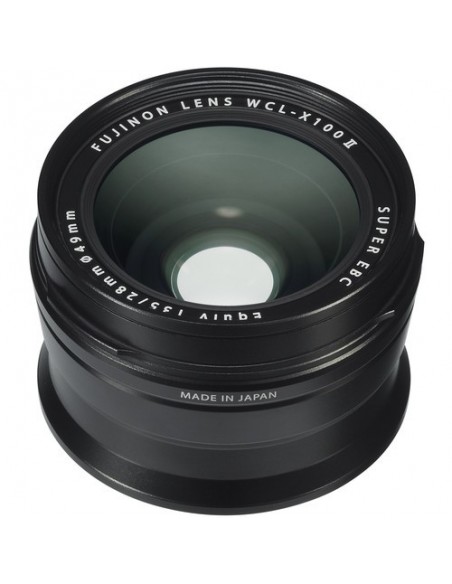 Dedicato alle fotocamere digitali FUJIFILM X100F, X100V, X100VI, l' obiettivo di conversione grandangolare WCL-X100 II argento amplia il campo visivo dell'obiettivo originale di 0,8x per offrire una lunghezza focale equivalente a 28 mm più ampia. Questo obiettivo aggiuntivo è progettato per mantenere le prestazioni ottiche dell'obiettivo originale e il corpo della fotocamera X100 riconosce anche quando l'obiettivo di conversione è collegato e visualizza le linee della cornice corrispondenti quando si lavora con il mirino ottico.