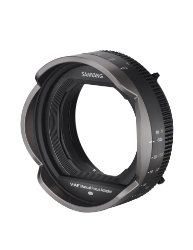 L'adattatore Samyang V-AF MF si collega facilmente alla parte anteriore di qualsiasi obiettivo V-AF , offrendo a registi e videografi il pieno controllo della messa a fuoco. L'adattatore di messa a fuoco Samyang V-AF MF ha una doppia scala con piedi e metri e la regolazione fine della messa a fuoco può essere effettuata con una rotazione uniforme di 300°. L'anello di messa a fuoco è 0.8 mod standard del settore e può essere abbinato a qualsiasi follow focus.