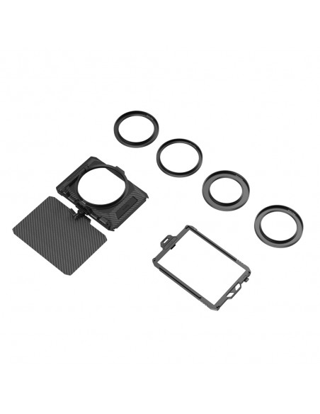SmallRig mini Matte Box 3196 è progettato per DSLR e fotocamere mirrorless per evitare che la luce solare o altra luce causino abbagliamenti e bagliori per il controllo delle immagini sullo schermo. Il suo connettore a morsetto funziona con anelli adattatori di varie dimensioni (Φ52-95mm; Φ55-95mm; Φ58-95mm; Φ62-95mm; Φ67-95mm; Φ72-95mm; Φ77-95mm; Φ82-95mm; Φ86-95mm) o può essere collegato direttamente all'obiettivo Φ95 mm; il suo anello adattatore si adatta a CPL circolare, filtro ND e altri filtri circolari fino a Φ92,5 mm. Il vassoio del filtro 3319 può essere montato rapidamente sulla scatola opaca tramite un morsetto NATO e supporta più filtri plug-in 4 x 5,65" fino a 4 mm di spessore. Il vassoio del filtro 3320 (acquistabile separatamente) può essere montato rapidamente sulla scatola opaca tramite un morsetto NATO e supporta più filtri plug-in 4 x 4" fino a 4 mm di spessore contemporaneamente. È facile da riporre ed evitare graffi e impronte digitali durante la sostituzione dei filtri plug-in. La bandiera superiore regolabile in fibra di carbonio blocca la luce solare o la luce forte e previene anche i riflessi interni grazie al suo design antiriflesso. I fori filettati superiori da 1/4"-20 consentono un facile fissaggio di altri accessori e i fori filettati da 1/4"-20 anti-torsione sul supporto per asta LWX da 15 mm della tuta inferiore 3411 .