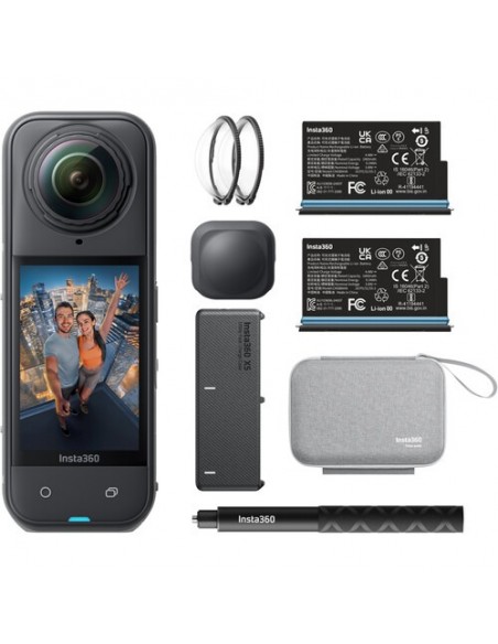 Aggiorna la tua produzione con video cinematografici a 360° con la potente videocamera Insta360 X5 360° 8K , in grado di catturare HDR 8K30 360° con tecnologia PureVideo migliorata per condizioni di scarsa illuminazione in modalità a doppio o singolo obiettivo, il tutto in un'unica action camera portatile. La X5 offre un design pronto all'azione con software basato su intelligenza artificiale per un approccio intuitivo alla creazione di contenuti dinamici in qualsiasi ambiente, oltre a riprese "Bullet Time", bit rate di 180 Mb/s, time shift, registrazione in loop e time-lapse. La X5 ha anche un design robusto aggiornato, è impermeabile fino a 15 metri e ha una batteria ricaricabile da 2400 mAh potenziata per un'autonomia aumentata fino a 88 minuti.