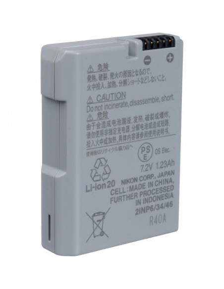 Batteria ricaricabile compatta agli ioni di litio, con elevata capacità in caso di utilizzo prolungato. La batteria è compatibile con specifiche fotocamere Nikon. Può essere caricata dall'interno della fotocamera se si tratta di una fotocamera Nikon che supporta questo metodo di ricarica.