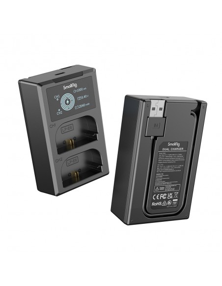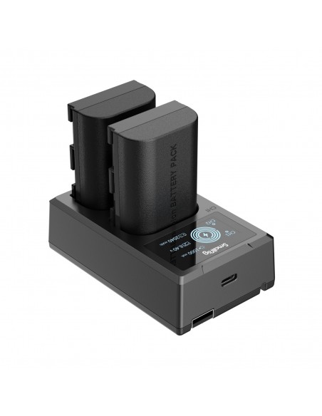 Il kit batteria e caricabatterie per fotocamera SmallRig LP-E6NH 3821 include due batterie e un caricabatterie. La batteria, dotata di un chip di decodifica completo, supporta perfettamente diverse fotocamere senza causare finestre pop-up e ha un guscio in ABS e PC satinato ignifugo di qualità per garantire tocco raffinato e durata. Ha le stesse dimensioni della batteria originale e si inserisce perfettamente nel vano batteria. Il caricabatterie doppio può caricare due batterie contemporaneamente, grazie allo schermo LCD che visualizza la tensione di carica, la corrente e la capacità di carica in tempo reale. Viene fornito con cavo di ricarica USB-A integrato e interfaccia di ingresso USB-C, che consente di caricarlo tramite adattatore USB, caricatore per auto, power bank.