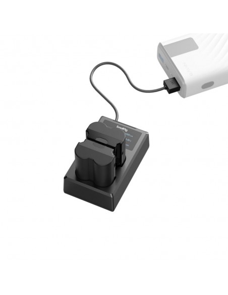 Il kit batteria e caricabatterie per fotocamera SmallRig NP-W235 3822 include due batterie e un caricabatterie. La batteria, dotata di un chip di decodifica completo, supporta perfettamente diverse fotocamere senza causare finestre pop-up e ha un guscio in ABS e PC satinato ignifugo di qualità per garantire tocco raffinato e durata. Ha le stesse dimensioni della batteria originale e si inserisce perfettamente nel vano batteria. Il caricabatterie doppio può caricare due batterie contemporaneamente, grazie allo schermo LCD che visualizza la tensione di carica, la corrente e la capacità di carica in tempo reale. Viene fornito con cavo di ricarica USB-A integrato e interfaccia di ingresso USB-C, che consente di caricarlo tramite adattatore USB, caricatore per auto, power bank.