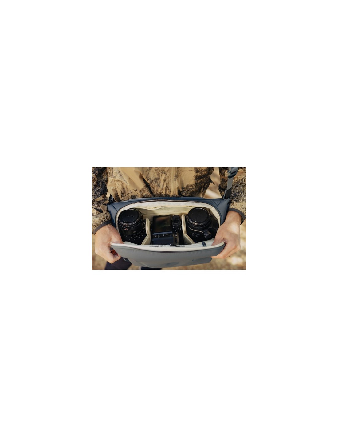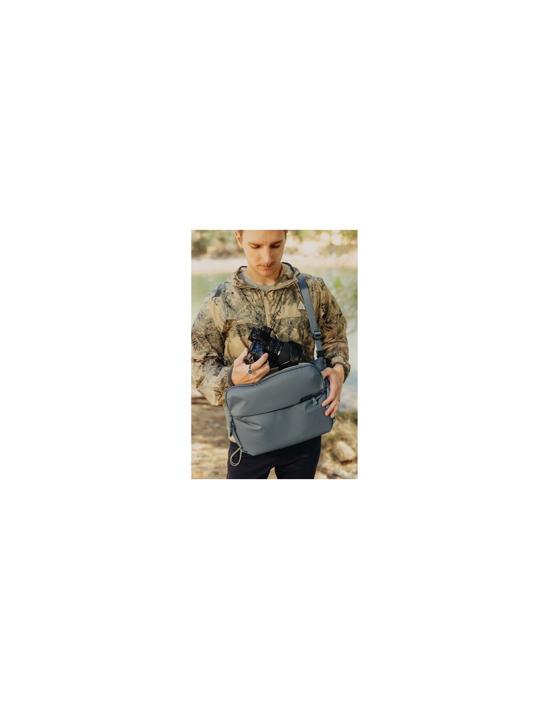 Con una custodia per laptop da 13", la 10L Sling si configura perfettamente come una borsa da lavoro minimalista per tutti i giorni. Come borsa fotografica, ti darà una capacità sostanzialmente maggiore rispetto alla 6L, pur rimanendo compatta e aerodinamica. L'unica tracolla con una cinghia per il trasporto di bagagli in borsa a rotelle.