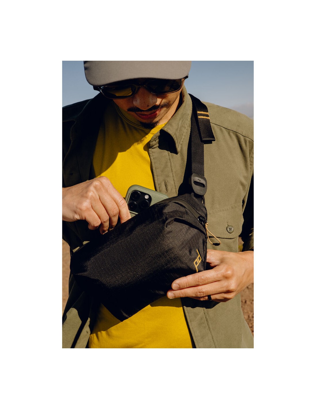 Porta con te tutto l'essenziale con la 2L Outdoor Sling nera di Peak Design . Questa borsa ha diverse tasche interne, tra cui una tasca a goccia con chiusura magnetica ideale per il tuo telefono. Tieni facilmente traccia delle tue chiavi con il cordino integrato. Puoi portare questa borsa sulla spalla sinistra o destra usando la tracolla ambidestra. Questa borsa approvata da bluesign è realizzata in tessuto di nylon riciclato.