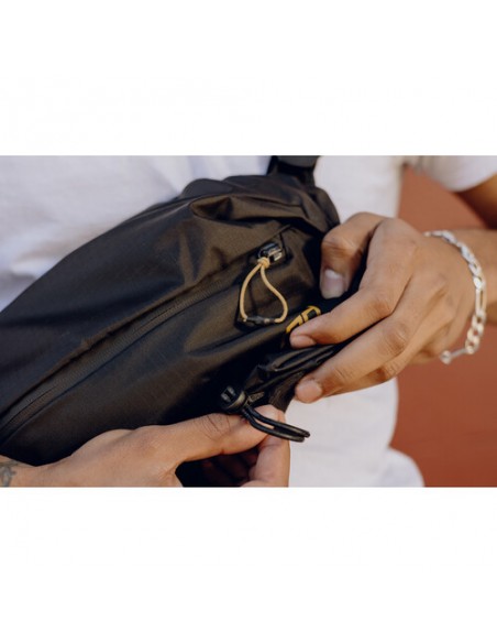 Porta con te tutto l'essenziale con la 7L Outdoor Sling in nero di Peak Design . Questa borsa ha diverse tasche interne, tra cui una tasca a goccia con chiusura magnetica ideale per il tuo telefono. Tieni facilmente traccia delle tue chiavi con il cordino integrato. Puoi portare questa borsa sulla spalla sinistra o destra usando la tracolla ambidestra. Questa borsa approvata da bluesign è realizzata in tessuto di nylon riciclato.