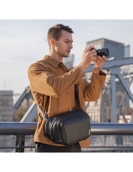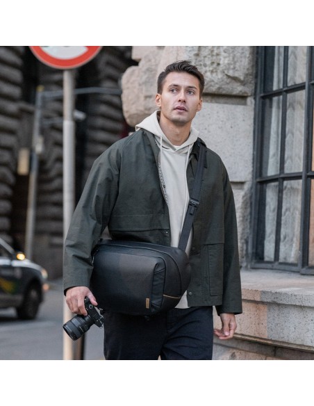 OneGo Solo V2 da 6 litri di PGYTECH è una tracolla elegante e funzionale progettata per contenere una fotocamera e due obiettivi nello scomparto principale. Uno scomparto dedicato può ospitare un iPad Pro da 11 pollici. Ha molteplici tasche di dimensioni diverse per una varietà di articoli tra cui batterie, mouse per computer, filtri, cavi, dischi rigidi, power bank e altro ancora. Il divisore interno sagomato in un unico pezzo incluso aiuta a mantenere i tuoi oggetti separati e facili da trovare. Lo scomparto anteriore è ideale per riporre telefono, carte, ecc. e chiavi per un accesso rapido. La cinghia è dotata di una spessa e ampia spallina in EVA e di una fibbia a regolazione rapida per una vestibilità perfetta. Le cinghie sul fondo della tracolla tengono un treppiede o altri attrezzi ingombranti.
