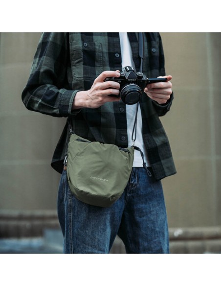 La versatile borsa con coulisse OneGo di PGYTECH  può essere utilizzata come borsa per fotocamera, borsetta, borsa a tracolla o come cubo per fotocamera in una borsa più grande. Può ospitare una fotocamera mirrorless piccola o media più un obiettivo extra. Puoi rimuovere la tracolla e usarla per trasportare la tua fotocamera con un peso fino a 3,3 libbre. La chiusura con coulisse è dotata di fermagli di sicurezza per mantenere i tuoi contenuti al sicuro. I divisori interni mantengono i tuoi oggetti separati e organizzati mentre la spessa imbottitura multistrato protegge i tuoi effetti personali da urti e impatti lievi. Una tasca nascosta contiene il tuo Apple AirTag in modo da poter individuare la borsa se viene smarrita.