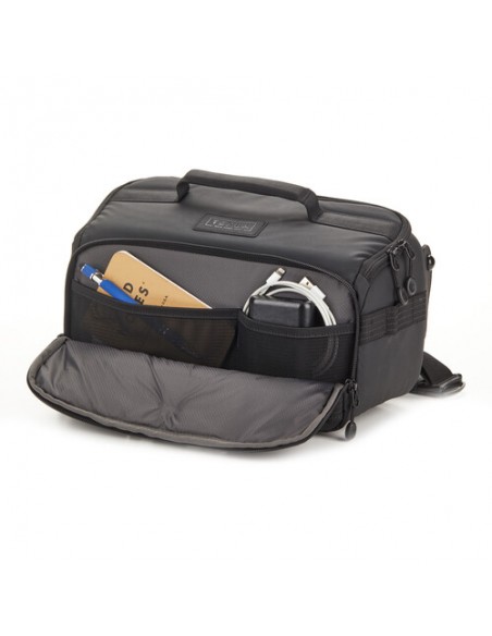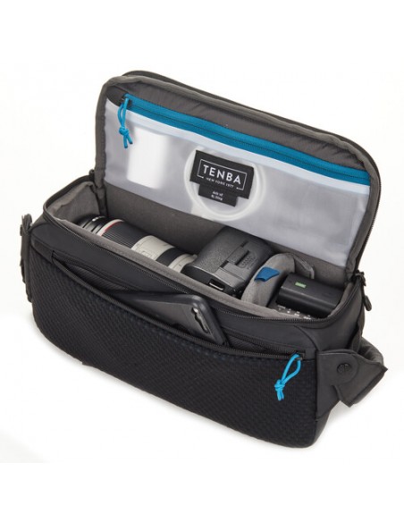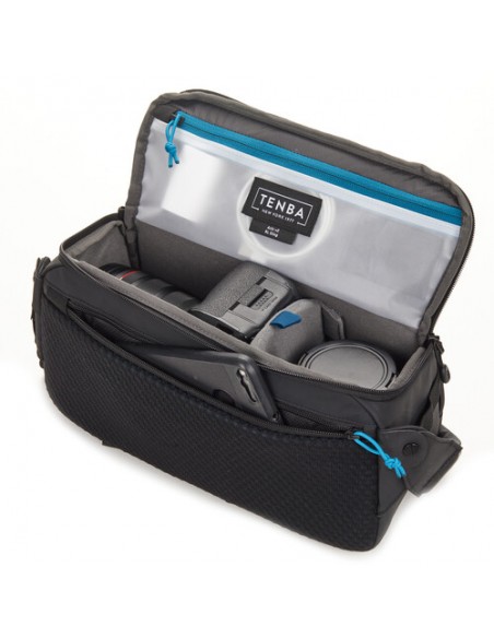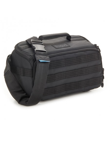 La borsa a tracolla MultiCam nera AXIS V2 di Tenba ha una capacità di 6L per proteggere e trasportare una fotocamera più quattro obiettivi fino a 70-200mm f/2.8 o un kit di droni DJI Mavic. La fettuccia MOLLE espandibile all'esterno è compatibile con i sacchetti per batterie Tenba Tools e i portafogli per schede di memoria. Questa fettuccia può anche ospitare varie buste e accessori standard militari. La tracolla ha una schiuma di memoria morbida e body-contouring per tenerti a tuo agio anche quando porti carichi pesanti per lunghi periodi. Il fondo della borsa ha cinghie per trasportare un treppiede o un monopiede. Una tasca nascosta contiene un Apple AirTag o Tile Bluetooth Tracker fornito dall'utente in modo da poter localizzare la tua fionda se si perde.