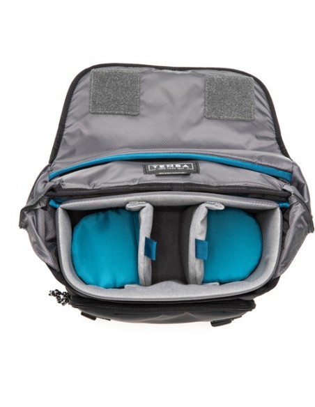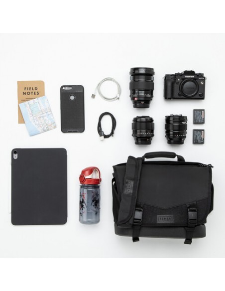 - Esclusiva chiusura Whisper Hook™ di Tenba: la patella può essere aperta con un'operazione quasi silenziosa tirando verso il basso la patta prima di estrarla dalla borsa.