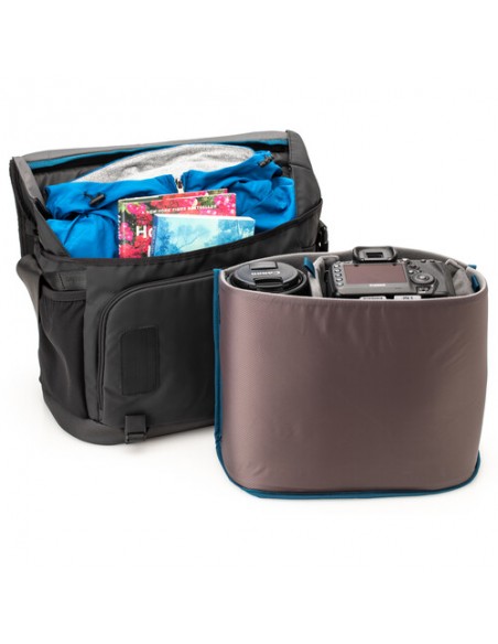 - Inserto per fotocamera imbottito rimovibile: scivola verso l'esterno per convertire la borsa per un uso generico, non fotografico. Non intacca la manica posteriore quindi la borsa può essere comunque utilizzata per trasportare laptop e tablet anche quando l'inserto imbottito è stato rimosso.