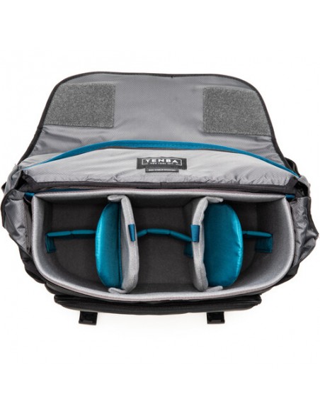 - L'esclusiva chiusura Whisper Hook™ di Tenba: la patella può essere aperta con un'operazione quasi silenziosa tirando verso il basso la patta prima di estrarla dalla borsa.
