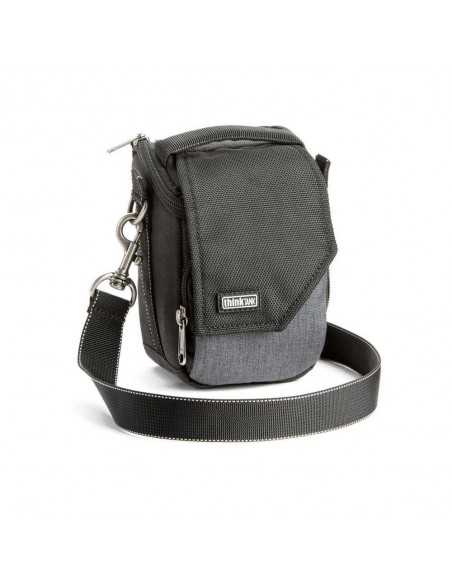 La borsa può essere trasportata tramite il manico superiore, indossata sopra la spalla con una tracolla regolabile o indossata sulla cintura dei pantaloni utilizzando la fessura passante posteriore. Le tasche laterali elastiche e una tasca interna in rete possono contenere accessori come schede di memoria, batterie o la copertura antipioggia con cuciture termosaldate inclusa.