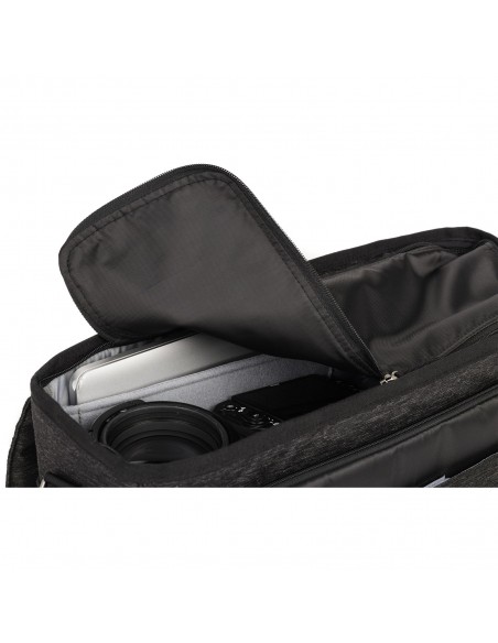 - Si adatta a un corpo macchina di dimensioni standard con un 24-70 mm f/2.8 collegato, 2-4 obiettivi extra, flash, un tablet da 10" e un laptop da 15". Può ospitare un 70-200 mm f/2.8 distaccato.