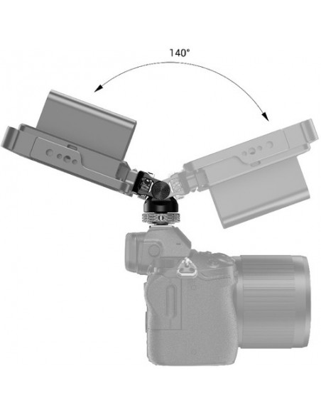 Il supporto per monitor girevole e inclinabile regolabile con adattatore per slitta di SmallRig si collega al tuo rig per telecamera o alla slitta per telecamera tramite il suo adattatore per slitta e monta qualsiasi monitor da 5 a 7" con una filettatura da 1/4"-20. Supportando un monitor sulla telecamera che pesa fino a 2,6 libbre, il supporto ruota di 360° e si inclina di 140°, consentendoti di posizionare il tuo monitor all'angolazione di visione migliore. La vite di montaggio da 1/4"-20 è dotata di una vite a testa zigrinata facile da girare.