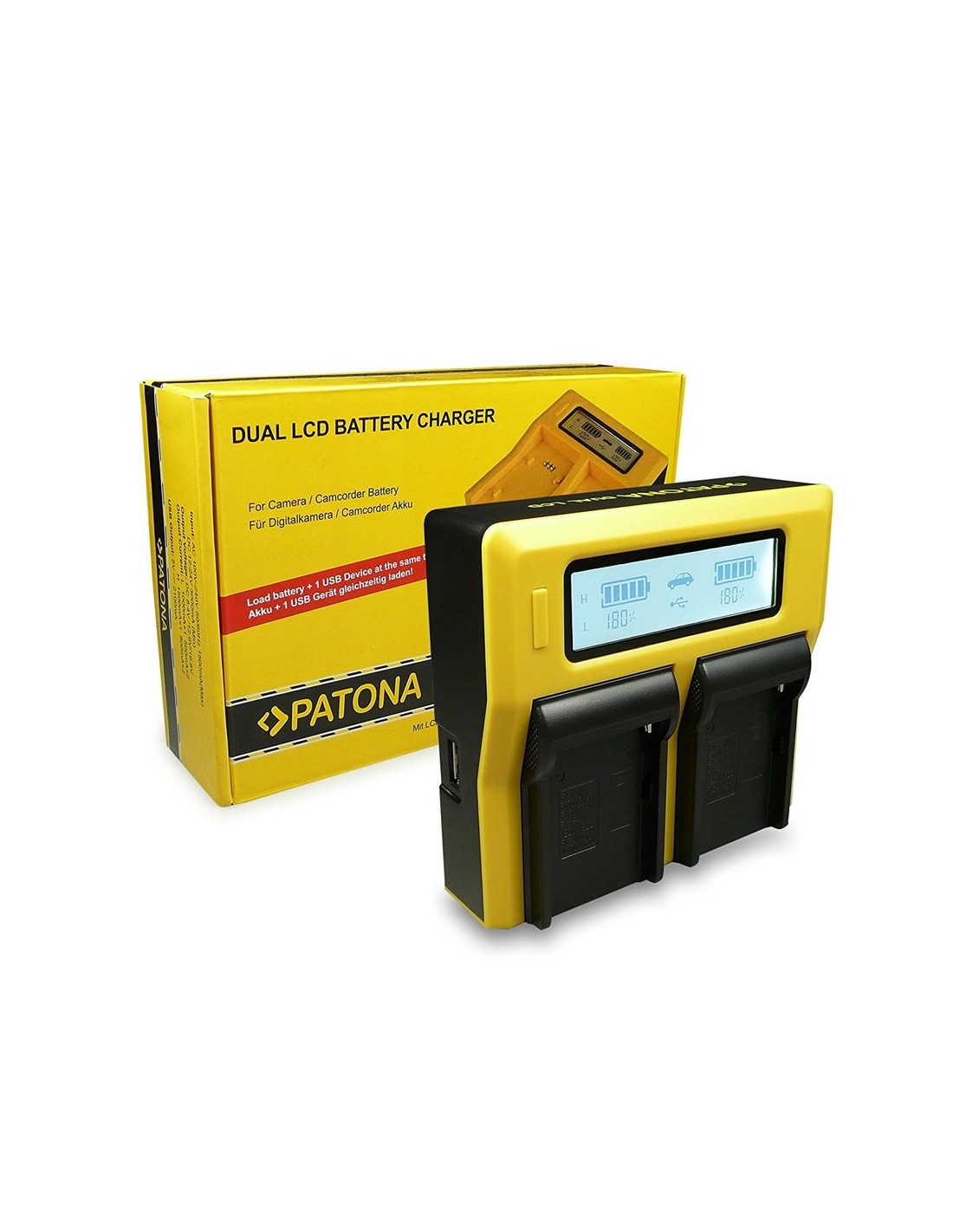 I nuovi caricabatterie DUAL LCD DIGITALI PATONA sono gli unici che consentono di caricare due batterie contemporaneamente. I caricabatterie DUAL LCD DIGITALI sono costituite da due componenti molto importanti che ci dà una possibilità di ricaricare le batterie dei nostri fotocamere: avviamo la possibilità di caricare la batteria tramite una presa a muro e il secondo a traverso la connessione di uscita USB 5V è puoi caricare tutti i dispositivi che portano una porta USB come tablet, smartphone.