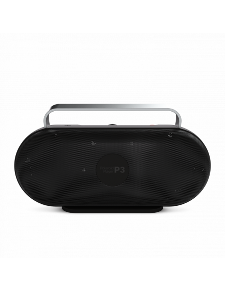 Con le dimensioni di un ananas (compresa la "corona", che è proprio il nome della parte superiore), è la scelta ottimale per chi ha bisogno di più volume. Ma resta sempre super portatile, grazie alla maniglia in metallo lucido. Anche se nessuno dei nostri altoparlanti è stato creato per passare inosservato, il P3 è il vero cavallo di battaglia, che con le sue vibrazioni retro- futuristiche ricrea l'energia dei grandi boombox di una volta.