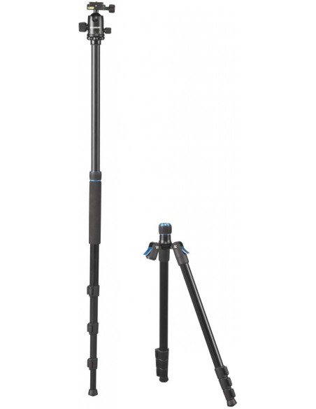 Comune a tutti i modelli è la robusta costruzione in alluminio e le gambe del treppiede anti-torsione. Tutti i treppiedi sono consegnati con una robusta borsa da trasporto. A seconda del modello, sono dotati di una robusta testa a sfera o di una testa a 3 vie.