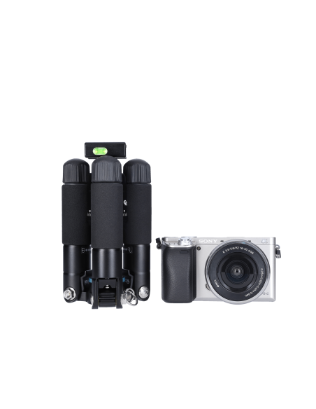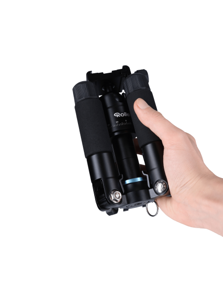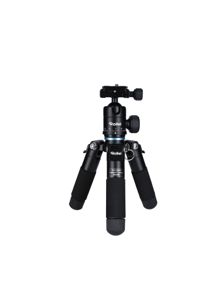 Con il mini treppiede Compact Traveller Mini M-1 (precedentemente M5-Mini) combina i vantaggi di un treppiede da viaggio con la capacità di carico di un treppiede adulto. Realizzato in alluminio leggero, pesa solo 800 grammi Compact Traveller Mini M-1 inclusa la testa del treppiede. Le gambe sono composte ciascuna da cinque segmenti e possono quindi essere utilizzate su una confezione da 16 cm unisci questo Rollei M1 Mini è appena più grande del palmo della tua mano. Svestito lo raggiungi Altezza di lavoro compresa tra 16 e 42,5 cm, ideale per la macrofotografia, ma anche per appoggiare la tua macchina fotografica su pareti, davanzale o tetto di un'auto per scatti notturni, foto di gruppo con autoscatto o panorami. Questo trasporta almeno 8 kg Rollei M-1 Mini , che è anche sufficiente per una fotocamera reflex a obiettivo singolo con un obiettivo grande.