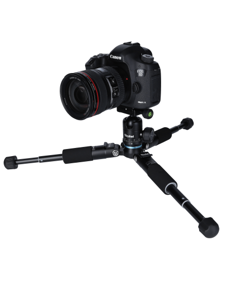 Il set comprende una testa a sfera professionale che può essere ruotata di 360 gradi e fissata con una sola vite. Puoi collegare facilmente la tua fotocamera utilizzando la piastra a sgancio rapido in dotazione con livella a bolla integrata per l'esatto allineamento orizzontale. Le gambe del treppiede ruotano su e giù e la colonna centrale è reversibile per il montaggio per lavori a terra nella fotografia micro e macro, una caratteristica molto importante. Con il Rollei Treppiede Compact Traveller Mini M-1 non perdere mai più un'occasione fotografica in vacanza e durante le tue attività all'aperto.