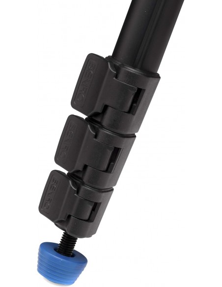 Le gambe del treppiede possono essere regolate e hanno una leva di bloccaggio per un'azione rapida. Per poter lavorare su diversi tipi di terreno, le gambe del treppiede hanno una finitura in gomma e metallo.