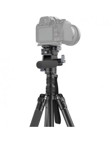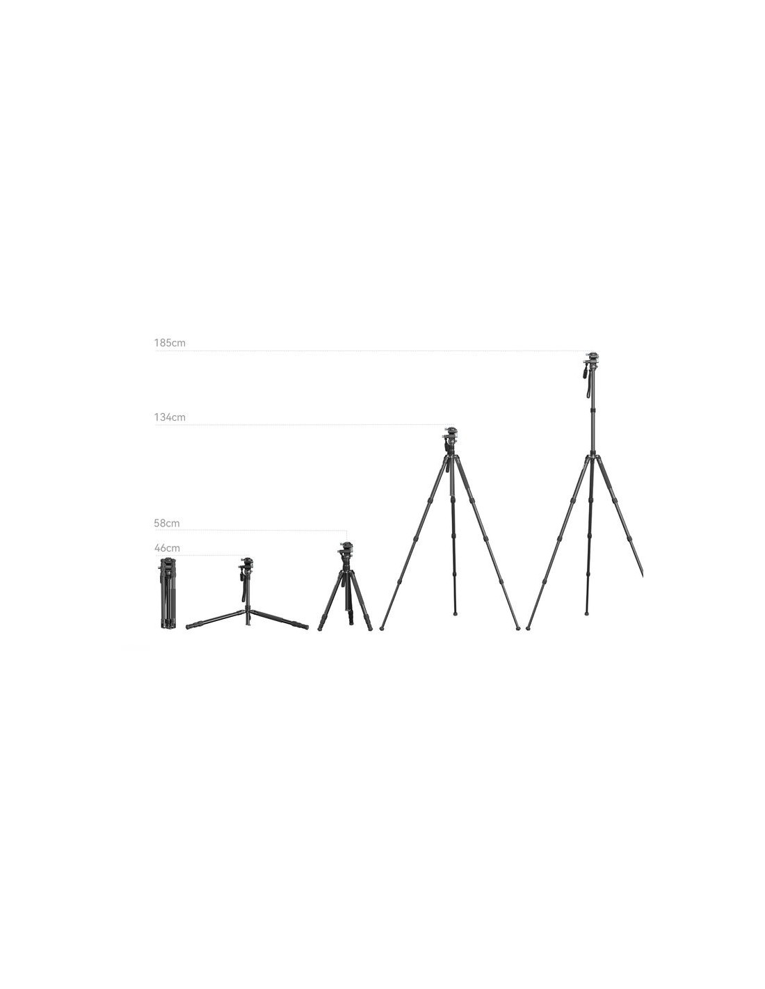 Il treppiede ha un'altezza massima di 185 cm e può essere utilizzato per un posizionamento statico in uno studio o per scatti rapidi in varie aree esterne con terreni più accidentati, semplicemente sostituendo i piedini in gomma rimovibili con i piedini metallici a punta inclusi.