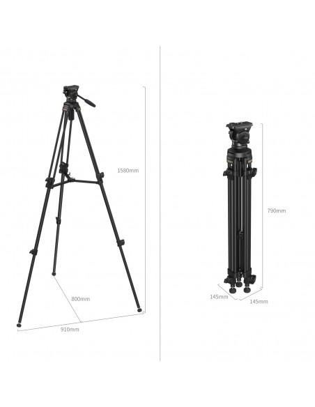 Progettato per videografi run-and-gun con attrezzature per telecamere leggere, il sistema di treppiede video in lega di alluminio leggero AD-50Lite di SmallRig include gambe del treppiede in lega di alluminio e una testa video per un sistema di supporto del treppiede durevole e portatile. Nel complesso, il sistema ha una capacità di carico di 5 Kg adatta a strutture di telecamere più piccole. Si ripiega fino a 79cm per un trasporto semplificato nella custodia per il trasporto inclusa.