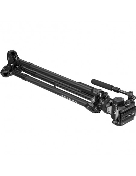 Il treppiede leggero è realizzato in resistente fibra di carbonio e, insieme alla testa fluida, ha un'altezza regolabile da 27cm a 168cm.