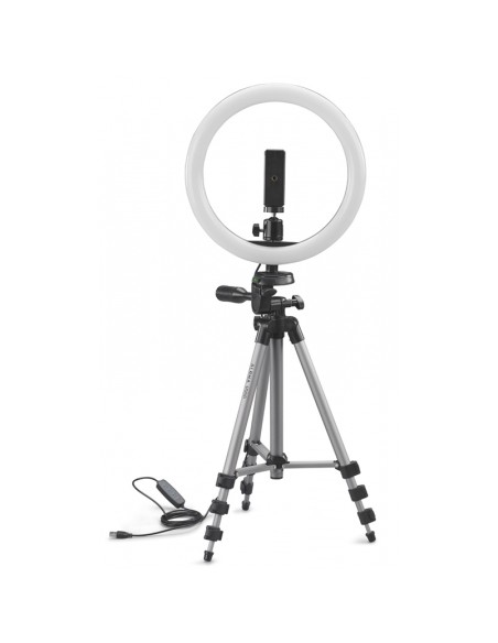 Con l'ALPHA 1000 Vlogging Kit, la gamma di treppiedi ALPHA ha un modello che si rivolge principalmente agli appassionati di telefonia mobile. È dotato di una luce ad anello che ha 120 LED potenti e dimmerabili. Sono disponibili tre diverse temperature di colore: 3000°K, 4500°K o 6000°K.