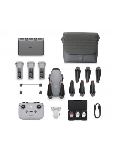 Include il radiocomando DJI RC-N3 standard, un set di filtri ND, due batterie aggiuntive, un hub di ricarica per batterie, una borsa a tracolla e altro.