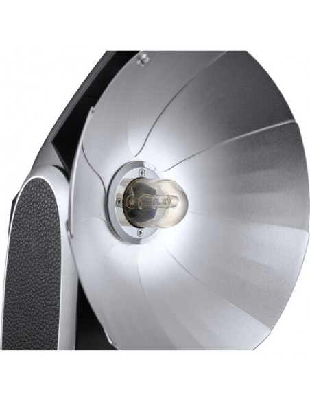 - Con un design di ispirazione vintage e una distinta finitura nera, l'unità ha un quadrante semplice che mette in correlazione ISO con aperture, livelli di potenza e distanze di ripresa. Ad esempio, se vuoi scattare a 5' con un ISO di 400, il quadrante allinea f/5.6 e 1/16 di potenza.
