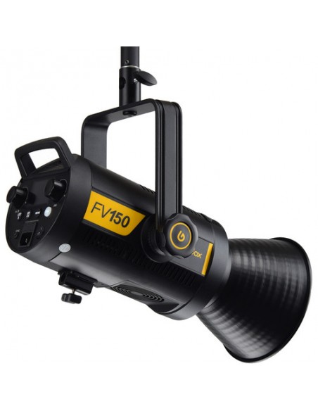 In modalità flash, la temperatura colore dell'FV150 è di nuovo 5600K e la potenza può essere regolata da 1/16 a piena potenza. Supporta la sincronizzazione ad alta velocità a velocità brevi come 1/8000 di secondo. Puoi apportare queste modifiche in modalità continua o flash. L'FV150 è pronto per l'uso in tutto il mondo tramite il suo alimentatore da 100 a 240 VAC. È incluso anche un riflettore standard con attacco Bowens e un canale per ombrello.