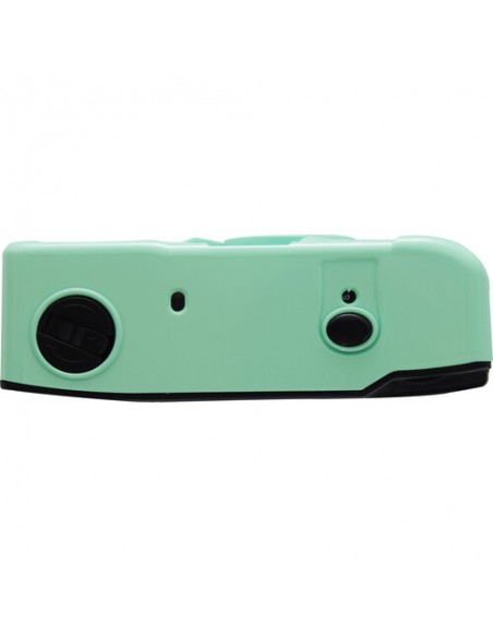 La Kodak M35 Film Camera con Flash in verde menta è una piccola macchina fotografica riutilizzabile che utilizza pellicole da 35 mm. Questa macchina fotografica è dotata di un obiettivo a fuoco fisso da 31 mm, avvolgimento e riavvolgimento manuale della pellicola e un flash incorporato con un interruttore on/off. È anche comodamente alimentata da una batteria alcalina AAA. Carica un rullino di pellicola da 35 mm nella macchina fotografica e scatta le tue foto, quindi riavvolgi la pellicola e falla sviluppare.