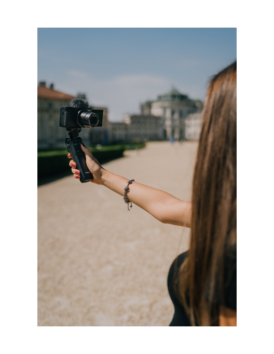 ZV-1 è compatibile con l'impugnatura ergonomica wireless Bluetooth® GP-VPT2BT di Sony, che offre un controllo senza fili di zoom, registrazione e altre fuzioni, e si espande in un mini-treppiede per scatti stabili a mani libere.