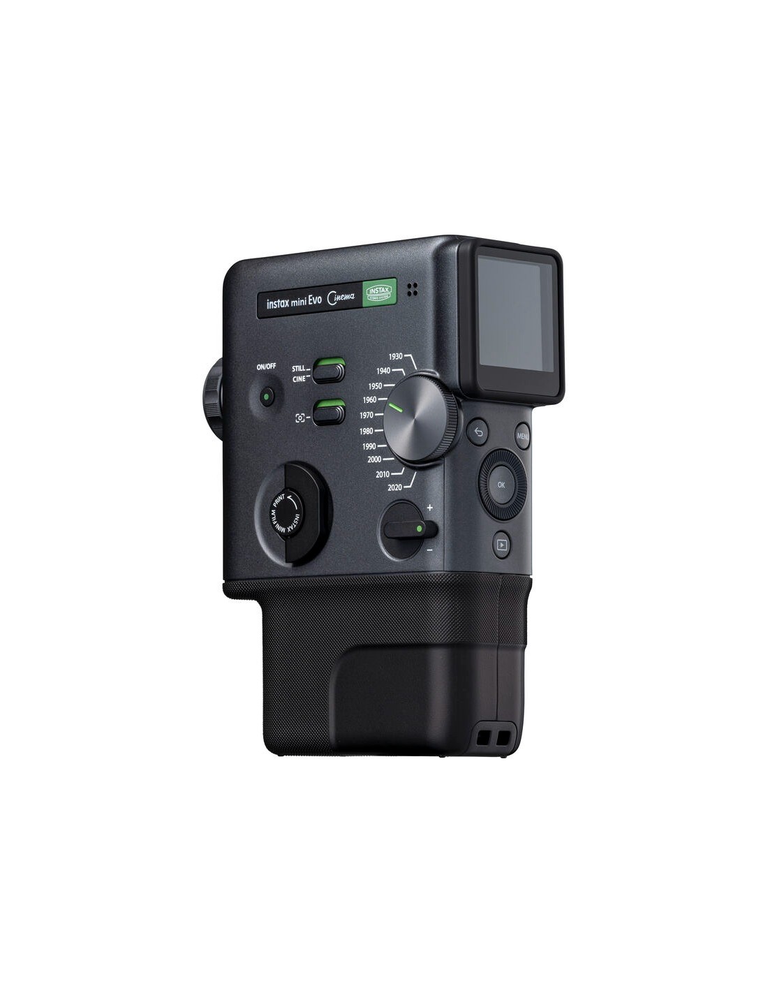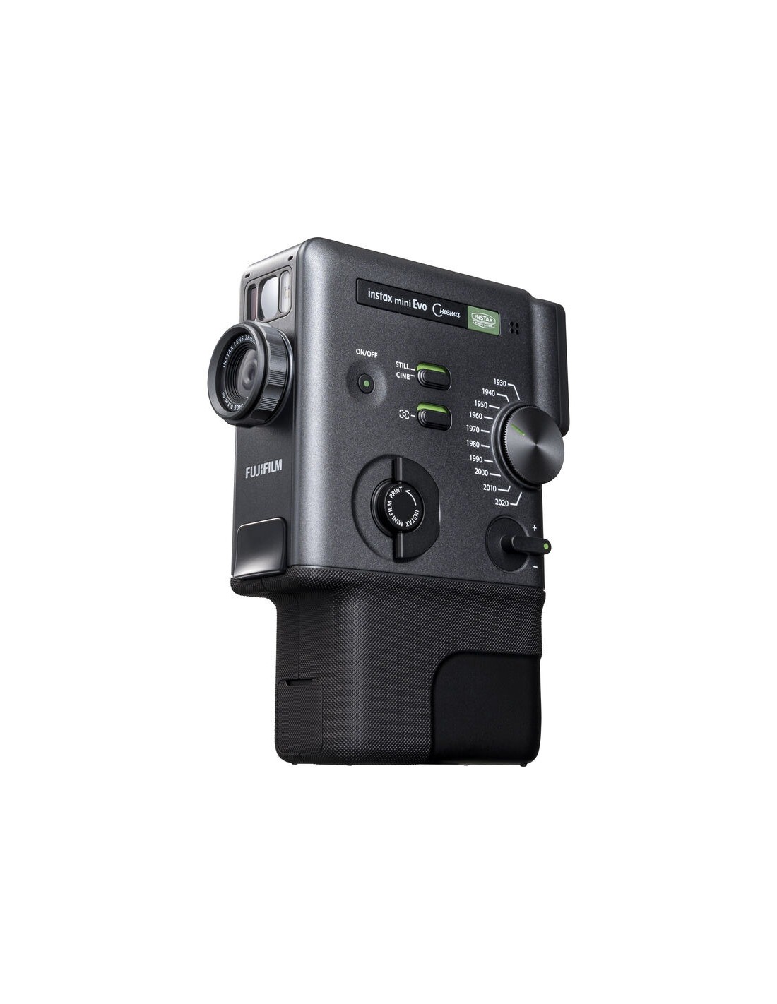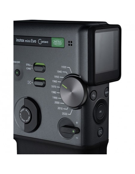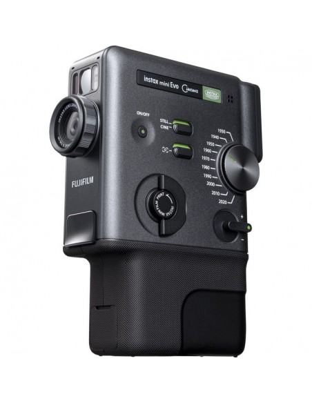 Dotata di un sensore CMOS da 5 MP e di un luminoso obiettivo f/2 equivalente a 28 mm, la mini Evo Cinema cattura immagini JPEG in formato 3:4 ottimizzate per la stampa istantanea. Le immagini possono essere visualizzate sul display LCD posteriore da 1,54", selezionate e stampate su pellicola istantanea Instax Mini di alta qualità a 318 dpi per colori intensi e dettagli nitidi.