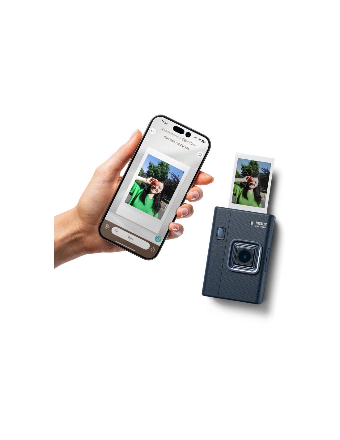 Caratterizzata da un design aggiornato con doppia fotocamera e nuove funzionalità, la fotocamera istantanea ibrida FUJIFILM instax mini LiPlay+ è un'offerta elegante con un vero mix di digitale e pellicola. La mini LiPlay+ registra in digitale ma può stampare foto su pellicola Instax mini. Inoltre, registrando in digitale, puoi stampare qualsiasi immagine desideri, quando vuoi e tutte le volte che vuoi. Questo flusso di lavoro di scatto digitale consente anche la connettività Bluetooth per controllare la fotocamera dallo smartphone, oltre alla possibilità di stampare foto dal telefono o di applicare filtri e cornici agli scatti durante la stampa. Un'altra caratteristica esclusiva della mini LiPlay+ è un pulsante dedicato alla registrazione audio che consente di registrare l'audio e applicarlo alle stampe tramite l'uso di un codice QR, che consente di ascoltare i suoni durante la scansione. Oltre alla tecnologia ibrida capture-to-print, questa fotocamera è caratterizzata anche da un design particolarmente compatto ed elegante, insieme a un obiettivo grandangolare fisso, flash integrato, specchio per selfie integrato e un monitor LCD posteriore per la composizione delle immagini e la configurazione della stampa.