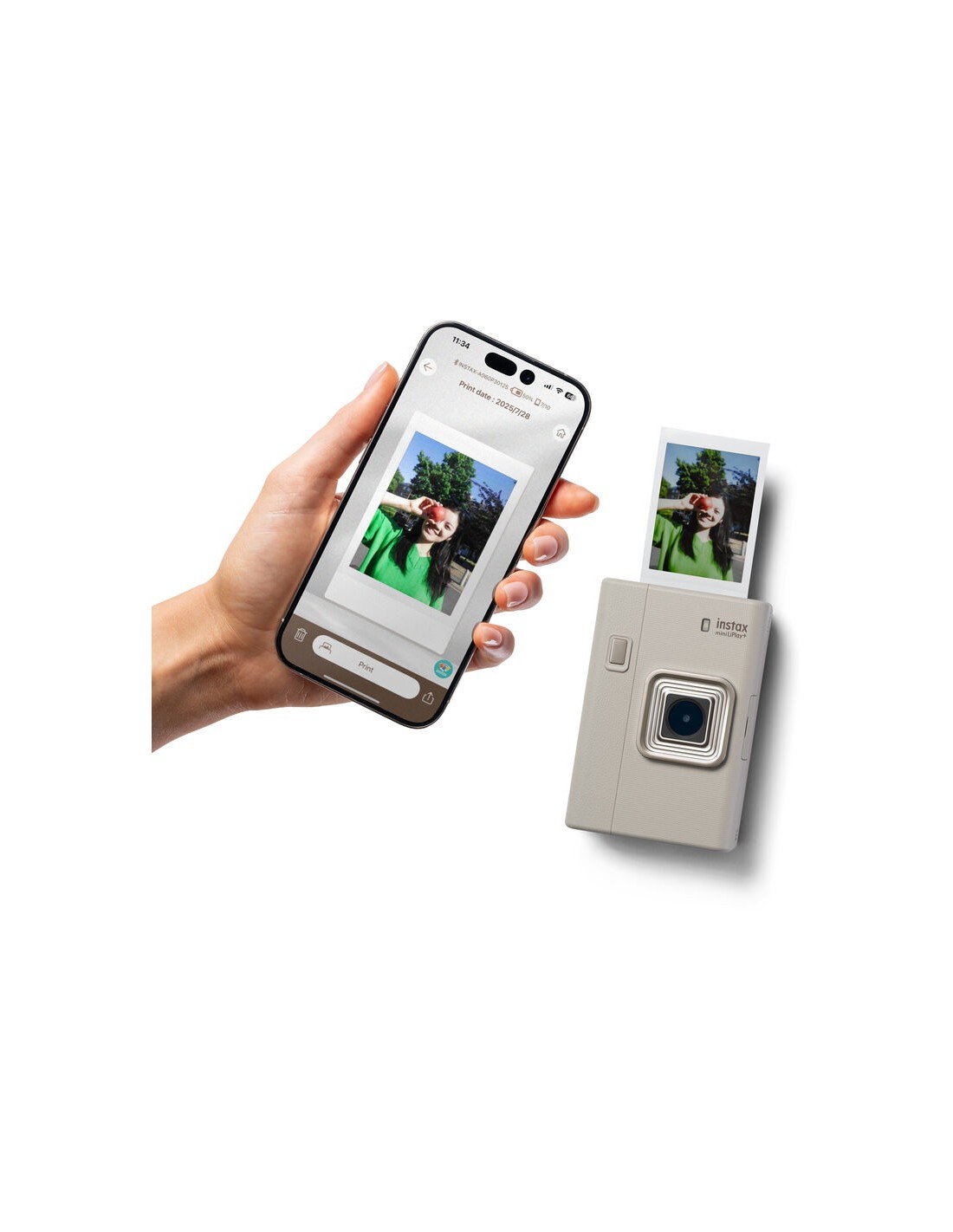 Caratterizzata da un design aggiornato con doppia fotocamera e nuove funzionalità, la fotocamera istantanea ibrida FUJIFILM instax mini LiPlay+ è un'offerta elegante con un vero mix di digitale e pellicola. La mini LiPlay+ registra in digitale ma può stampare foto su pellicola Instax mini. Inoltre, registrando in digitale, puoi stampare qualsiasi immagine desideri, quando vuoi e tutte le volte che vuoi. Questo flusso di lavoro di scatto digitale consente anche la connettività Bluetooth per controllare la fotocamera dallo smartphone, oltre alla possibilità di stampare foto dal telefono o di applicare filtri e cornici agli scatti durante la stampa. Un'altra caratteristica esclusiva della mini LiPlay+ è un pulsante dedicato alla registrazione audio che consente di registrare l'audio e applicarlo alle stampe tramite l'uso di un codice QR, che consente di ascoltare i suoni durante la scansione. Oltre alla tecnologia ibrida capture-to-print, questa fotocamera è caratterizzata anche da un design particolarmente compatto ed elegante, insieme a un obiettivo grandangolare fisso, flash integrato, specchio per selfie integrato e un monitor LCD posteriore per la composizione delle immagini e la configurazione della stampa.