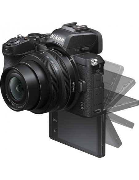 La fotocamera Nikon Z 50 è pronta a immortalare ciò che vedi nel momento esatto in cui la tua attenzione viene rapita. In aggiunta, è disponibile un flash a sollevamento per un'illuminazione aggiuntiva. Il corpo macchina leggero è facilmente trasportabile e vanta una lega di magnesio resistente nella parte superiore e in quella anteriore.