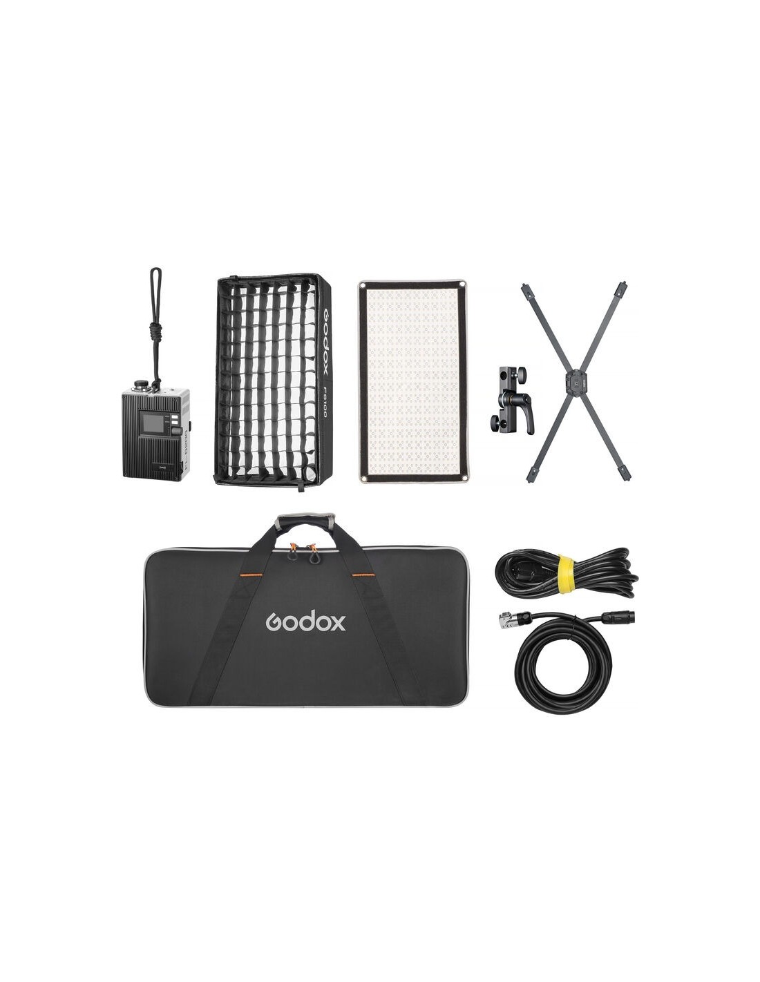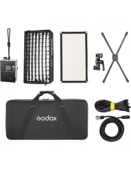 La luce è dotata di controller, cavo di collegamento, cavo di alimentazione, staffa metallica e supporto adattatore per il montaggio. Viene fornito anche un softbox standard per la diffusione, ma Godox offre anche altri softbox opzionali per aria e tubo per personalizzare ulteriormente il tappetino LED. Sono disponibili separatamente anche una lanterna pancake e una gonna.