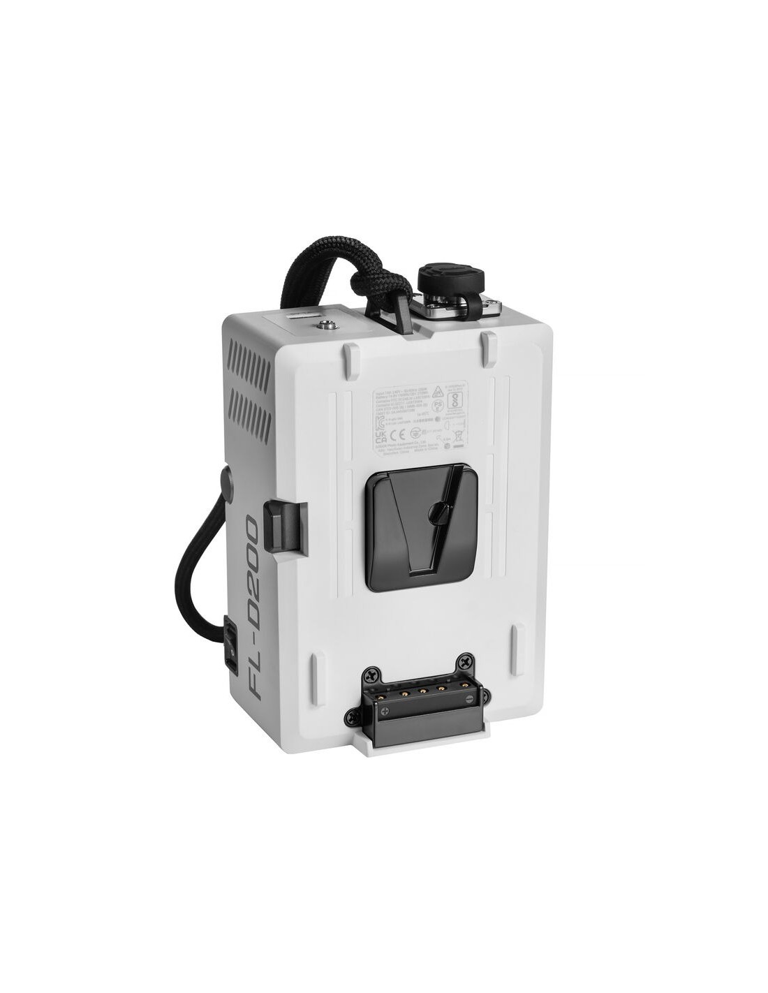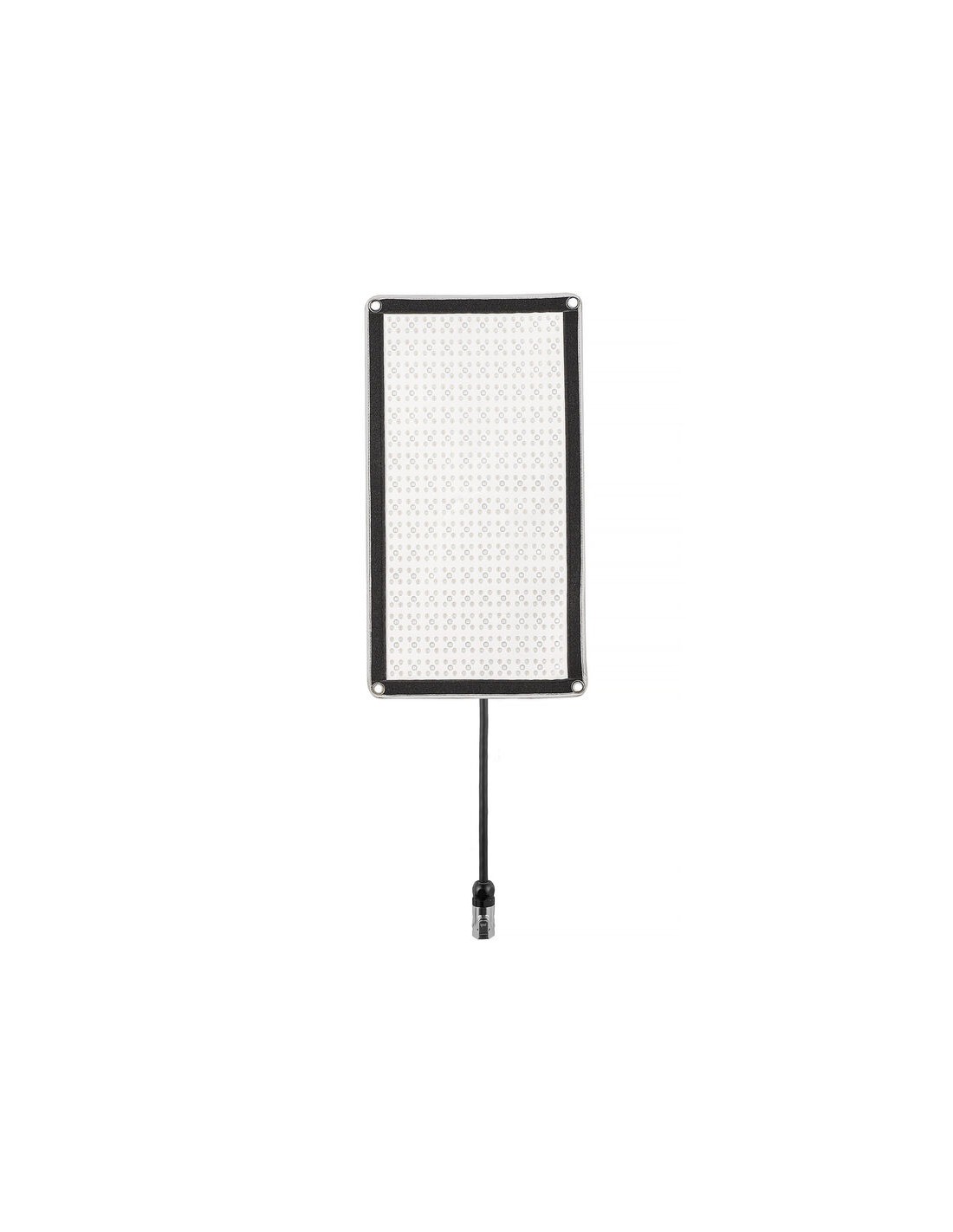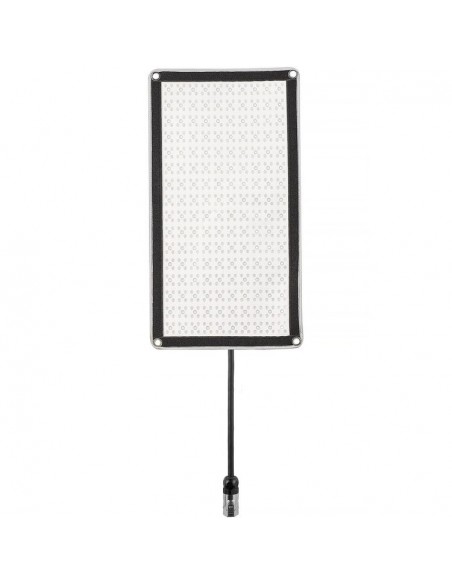 Per il controllo e l'alimentazione a bordo viene fornito un controller compatto. È possibile alimentare la luce tramite alimentazione CA o optare per una batteria opzionale con attacco a V per l'uso in movimento. Il controller palmare incluso è abbastanza piccolo per l'uso in studio e in spazi esterni. Sul retro è presente una piastra per la batteria opzionale con attacco a V.
