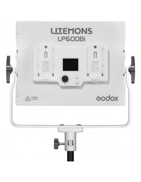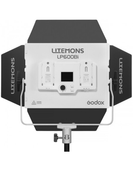 La funzionalità bicolore consente di regolare rapidamente la temperatura del colore da 2800 a 6500K. L'LP600Bi è progettato per un'emissione luminosa fino a 2470 lux a 3,3' e 5600K, con un consumo massimo di 60 W.