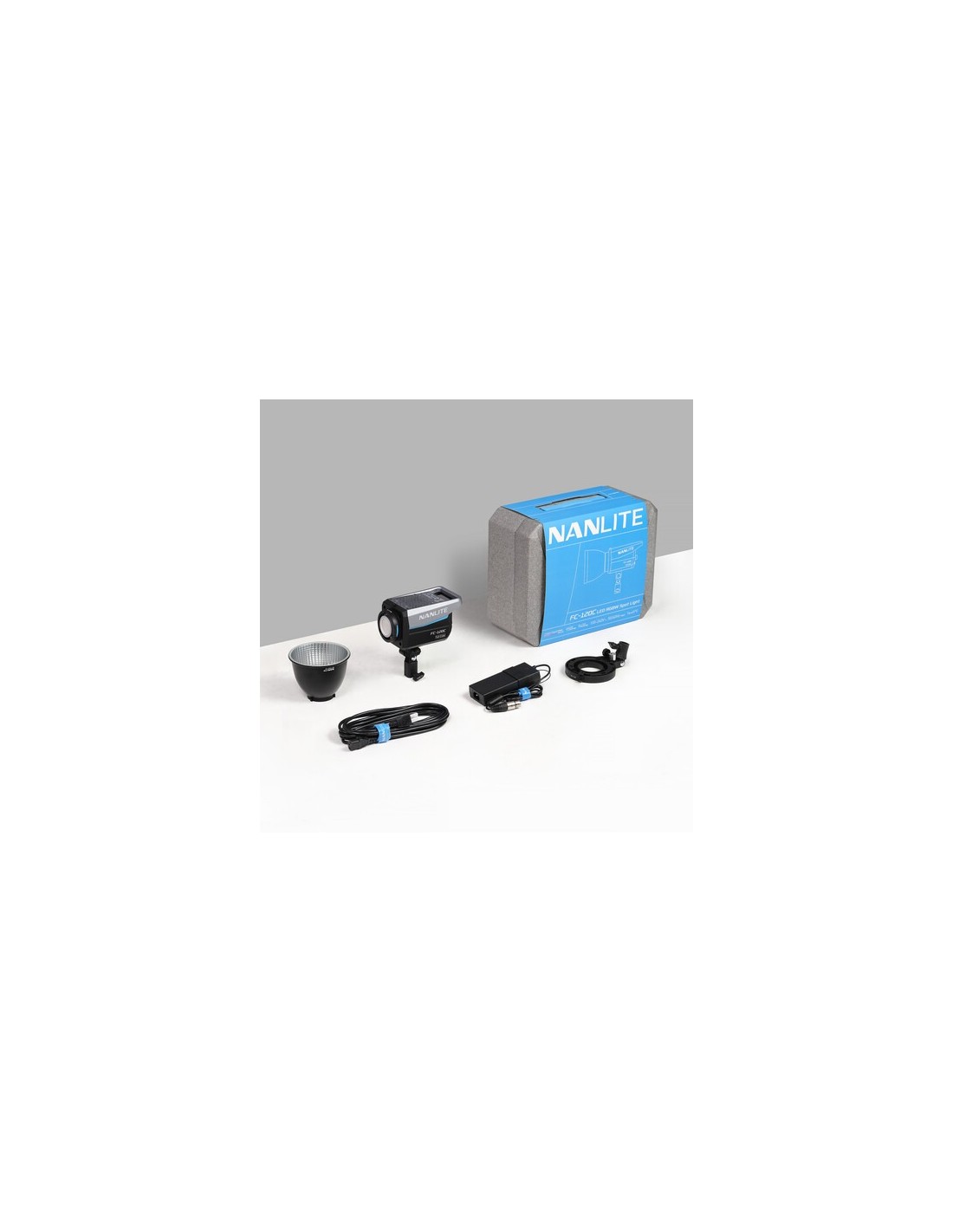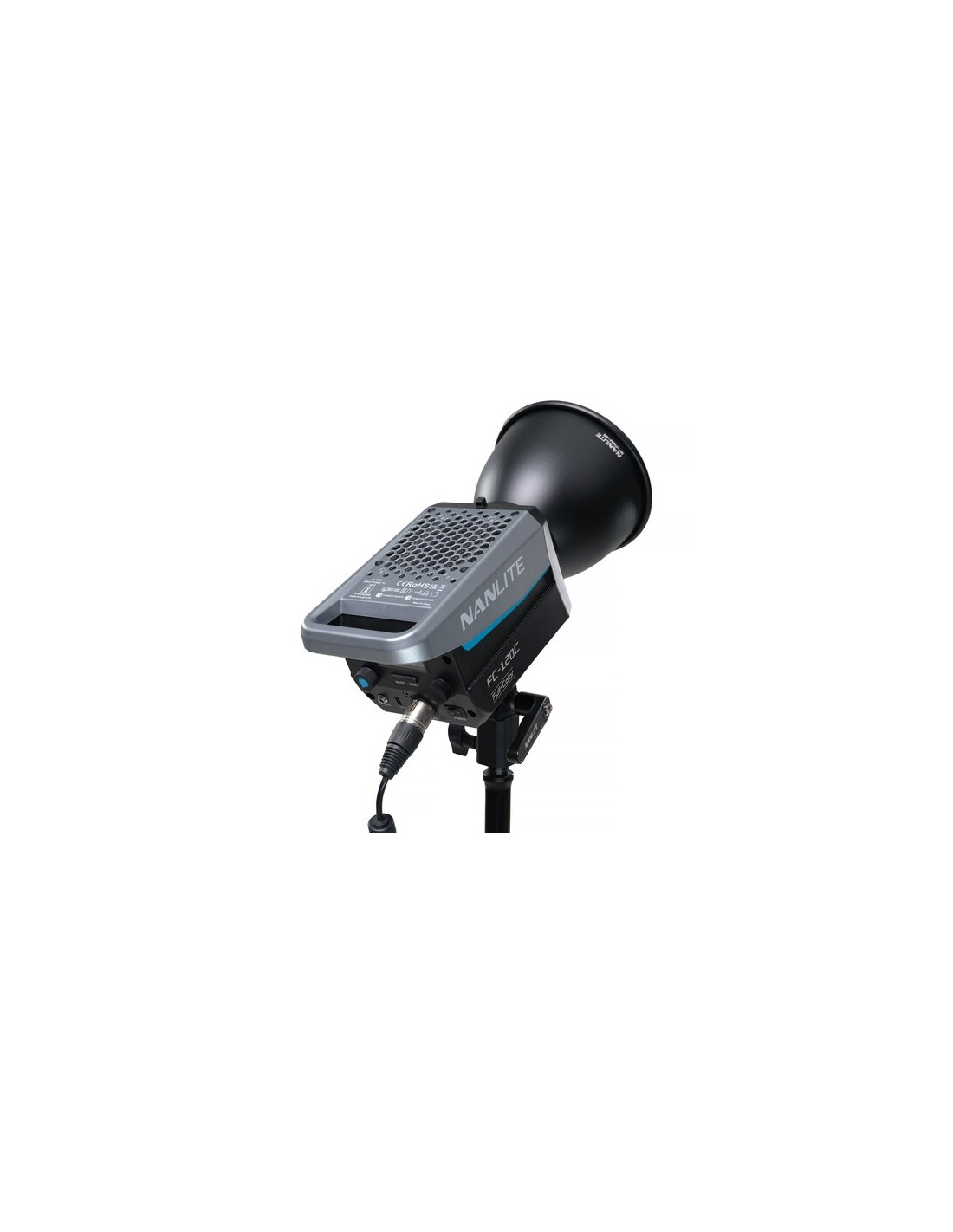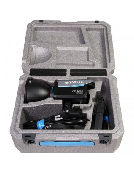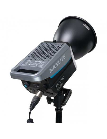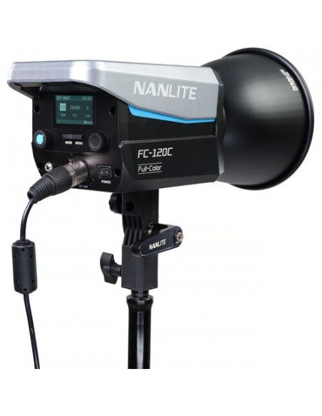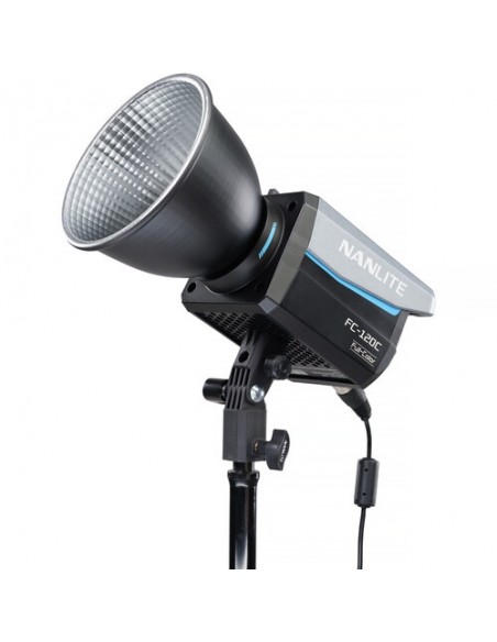 Utilizzando un attacco FM proprietario per modificatori di luce, l'FC120C è compatibile con una selezione di modificatori di luce Nanlite, come diversi tipi di softbox, una lente Fresnel FL-11 opzionale o un attacco per proiezione. L'apparecchio comprende anche un adattatore Bowens con portaombrelli integrato per una maggiore compatibilità con un vasto numero di modificatori di luce opzionali.