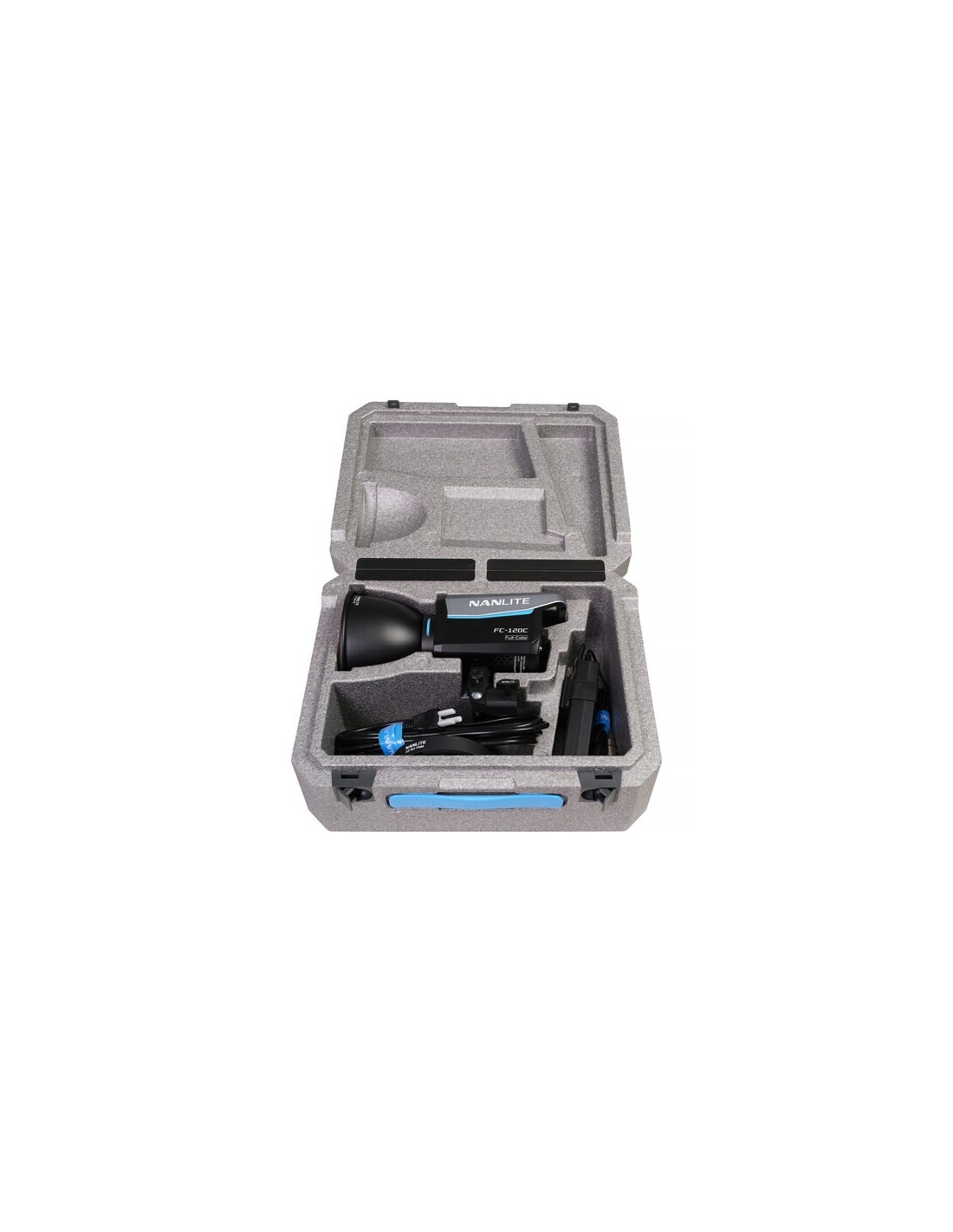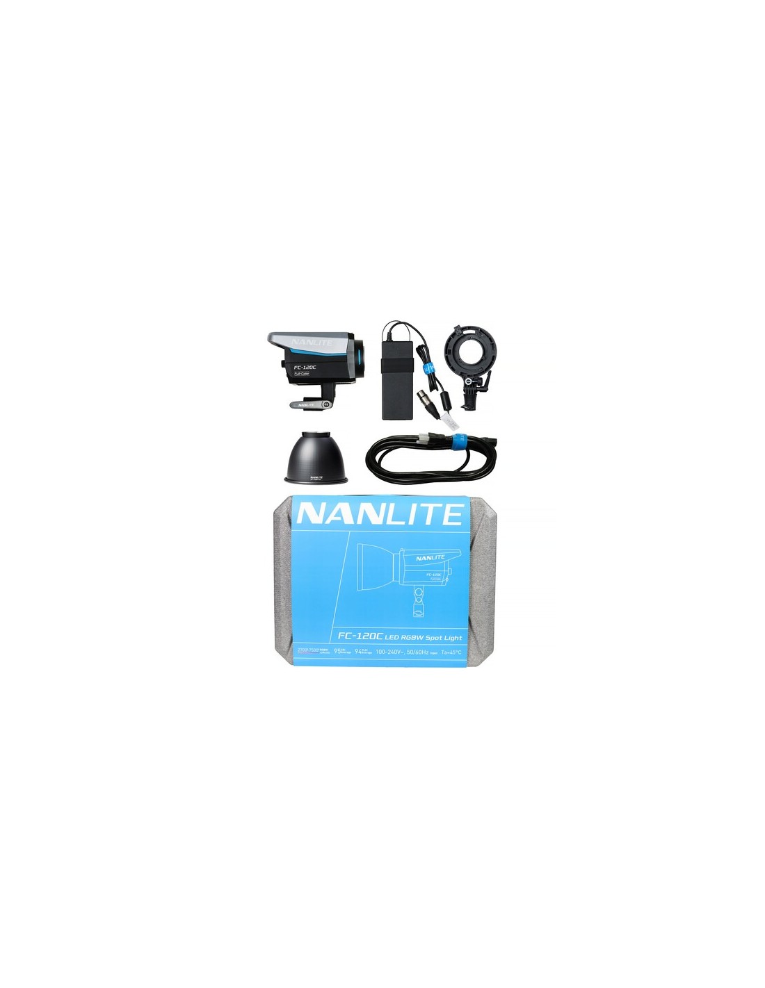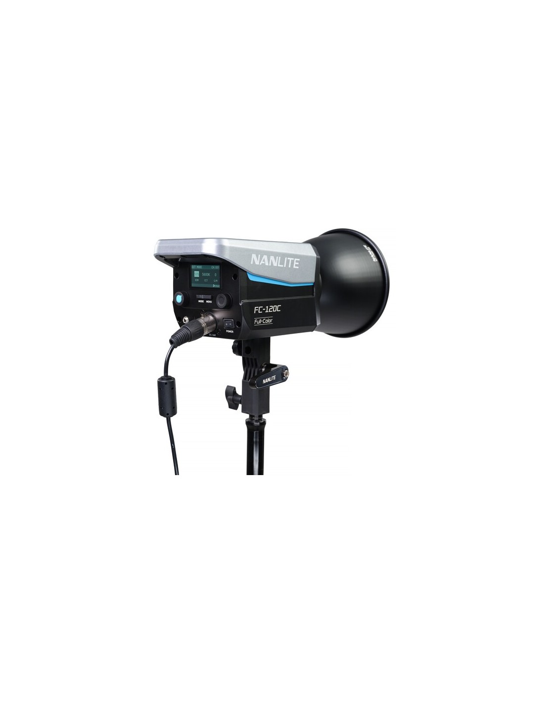 Utilizzando un attacco FM proprietario per modificatori di luce, l'FC120C è compatibile con una selezione di modificatori di luce Nanlite, come diversi tipi di softbox, una lente Fresnel FL-11 opzionale o un attacco per proiezione. L'apparecchio comprende anche un adattatore Bowens con portaombrelli integrato per una maggiore compatibilità con un vasto numero di modificatori di luce opzionali.