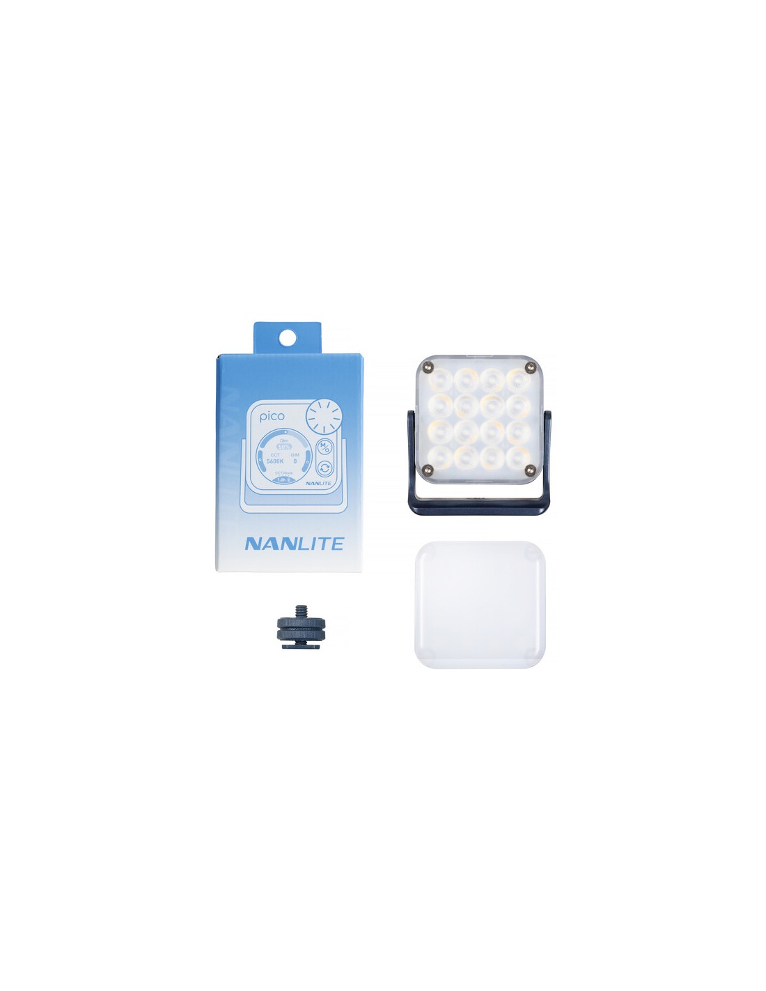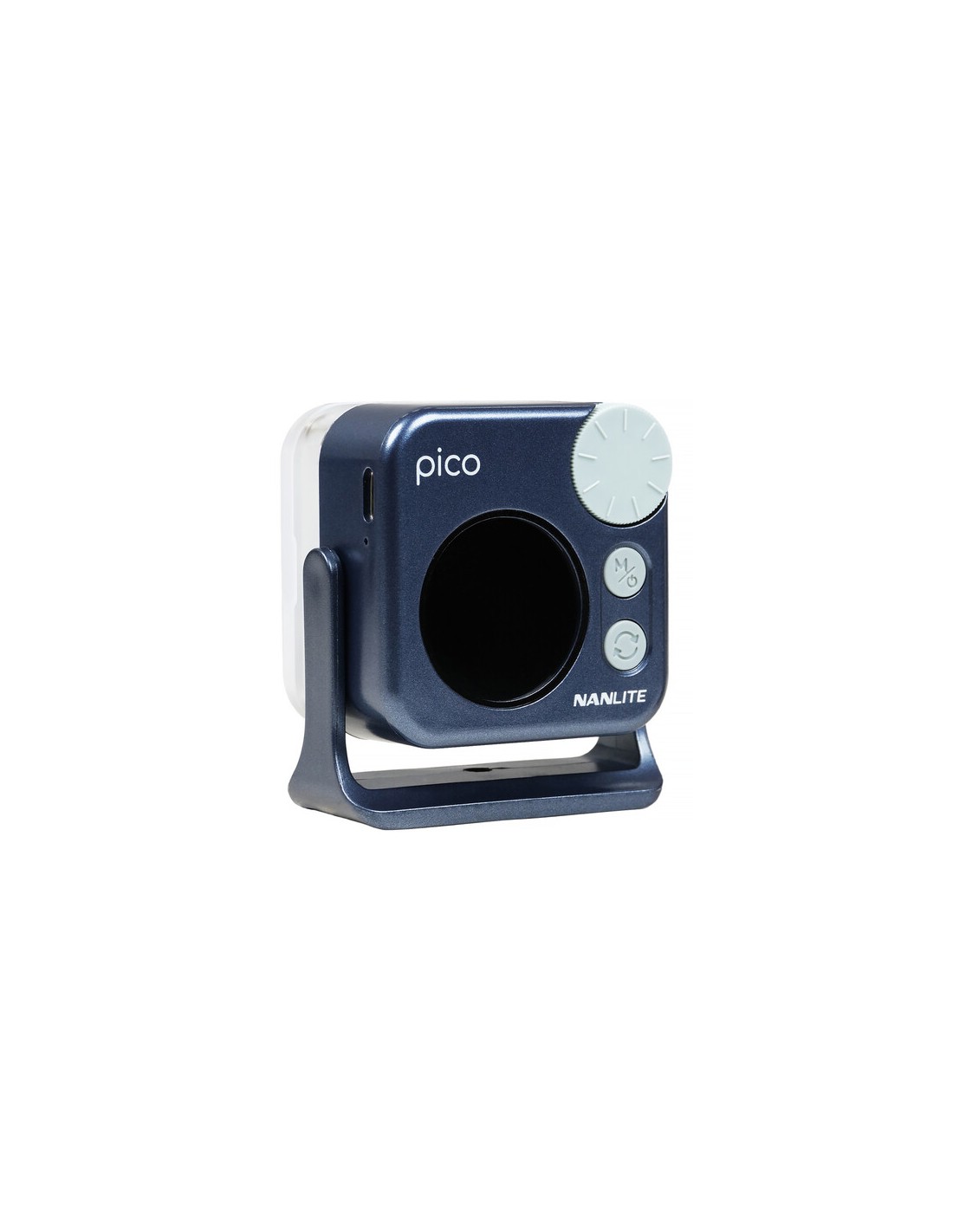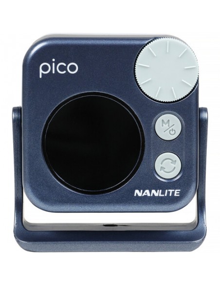 La Pico LED Mini Pocket Light di Nanlite è una luce LED compatta, a colori completi, con uno schermo rotondo integrato da 1,3" per una visualizzazione intuitiva dello stato e una batteria al litio da 1500mAh integrata, che fornisce circa 80 minuti di autonomia alla massima luminosità. Una porta USB-C integrata consente la ricarica e può fornire alimentazione continua se collegata a un power bank (disponibile separatamente). Il supporto a forcella è progettato con un attacco universale filettato da 1/4"-20 per un fissaggio rapido e semplice a treppiedi, stativi o teste a sfera, ma può anche essere attaccato a superfici magnetiche grazie ai magneti integrati sul fondo. Questa luce versatile offre un’ampia gamma di movimenti e viene fornita con un diffusore magnetico e un adattatore cold shoe.