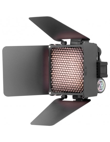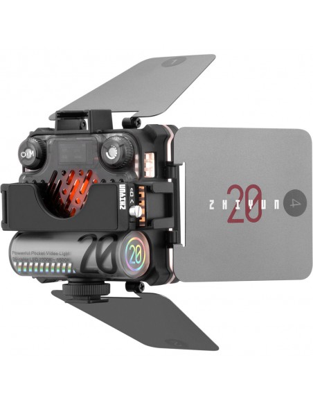 Questa versione combinata include accessori essenziali per modificare l'M20 in base alle tue esigenze di ripresa. Il kit viene fornito con un diffusore dedicato, barndoors a 4 foglie, una griglia a nido d'ape e una borsa portaoggetti.