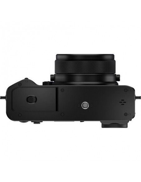 La piastra superiore della GFX100RF è realizzata in alluminio lavorato con precisione. Anche l'anello dell'obiettivo, le manopole di controllo, la piastra di base e altri dettagli sono realizzati con cura, garantendo una sensazione di alta qualità e un design distintivo.