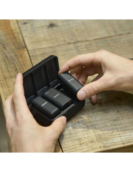 Registra due interviste e vlog con la tua videocamera Sony compatibile con Multi Interface utilizzando questo sistema di microfoni wireless Sony ECM-W3 per 2 persone , grazie ai suoi due trasmettitori a clip con microfoni integrati e ricevitore a doppio canale con connessione Multi Interface Shoe. Il sistema supporta la registrazione di segnali audio analogici e digitali in canali sia misti che separati per la massima flessibilità di post-produzione. Il ricevitore è ultracompatto e ha porte di uscita TRS da 3,5 mm e USB-C integrate. Due interruttori laterali consentono di selezionare la registrazione di canali separati o misti e di alternare tra le modalità di uscita analogica e digitale. Attiva la registrazione della traccia di sicurezza per proteggere da interruzioni impreviste. Un interruttore attenuatore sulle unità trasmittenti impedisce il clipping.