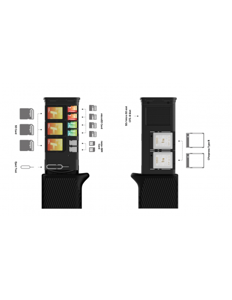 - Lettura e scrittura simultanea di tre schede, compatibile con iOS e Android